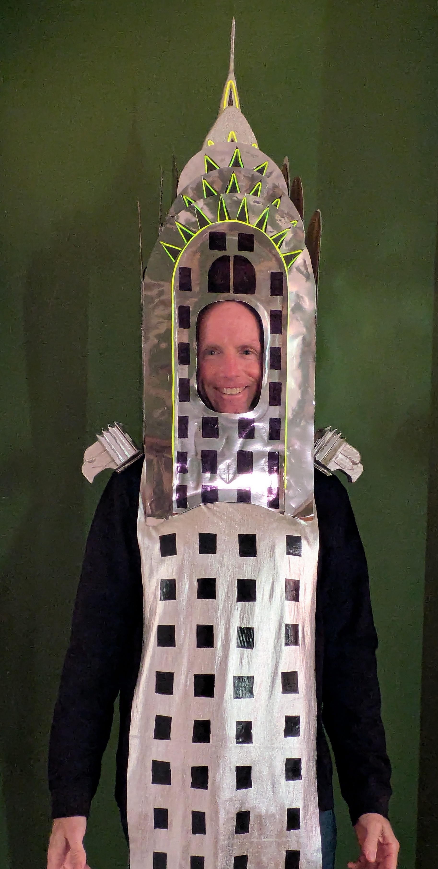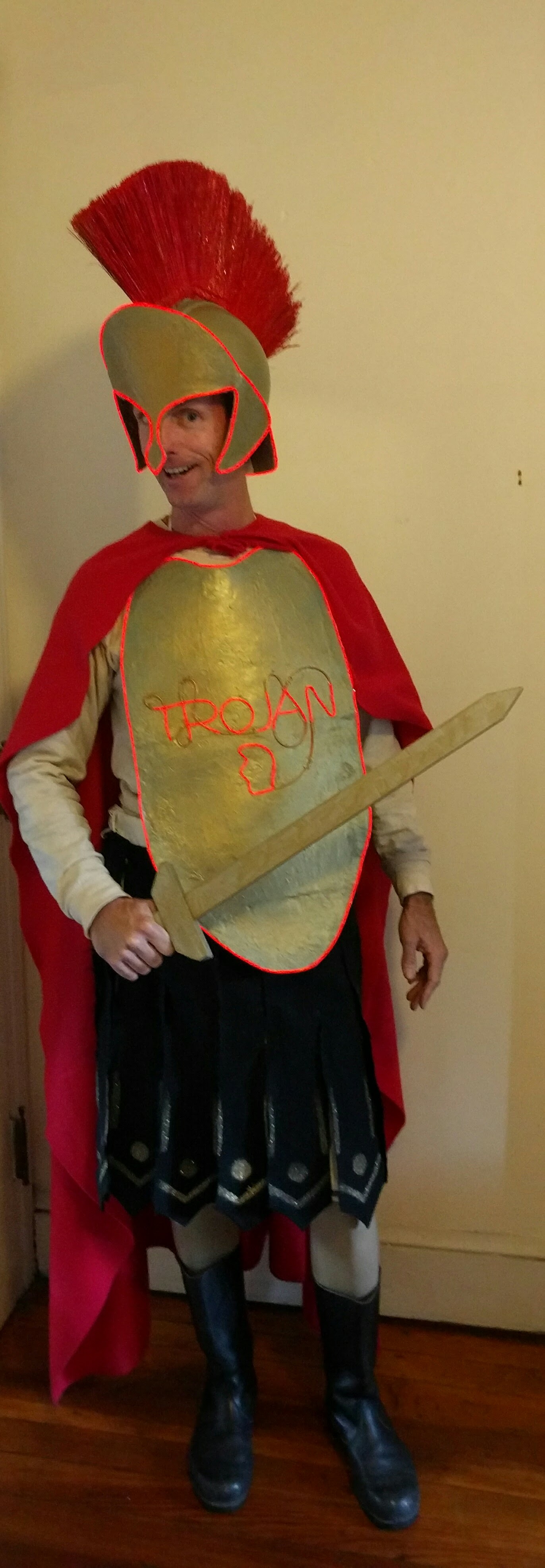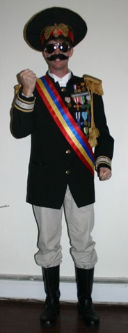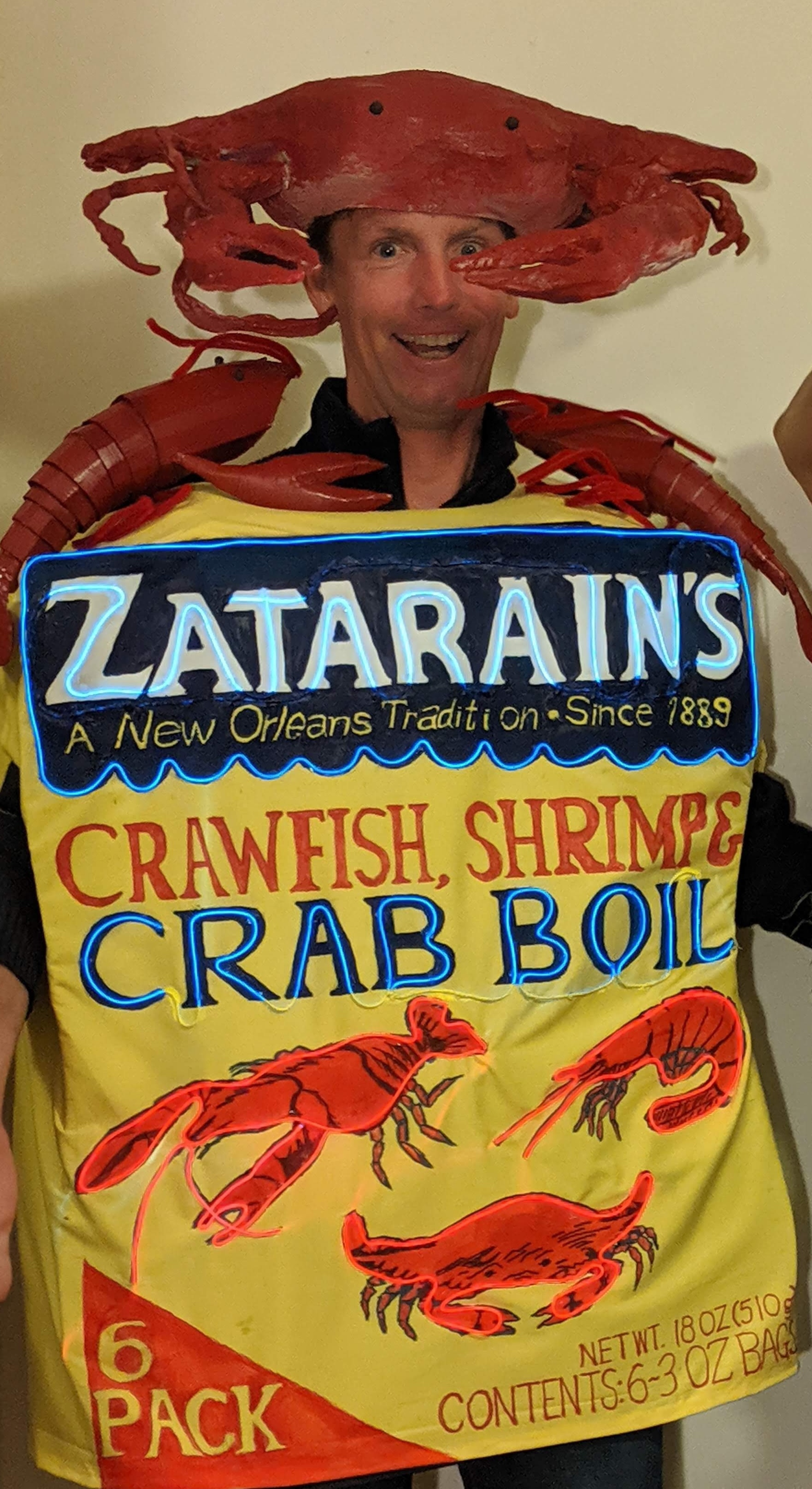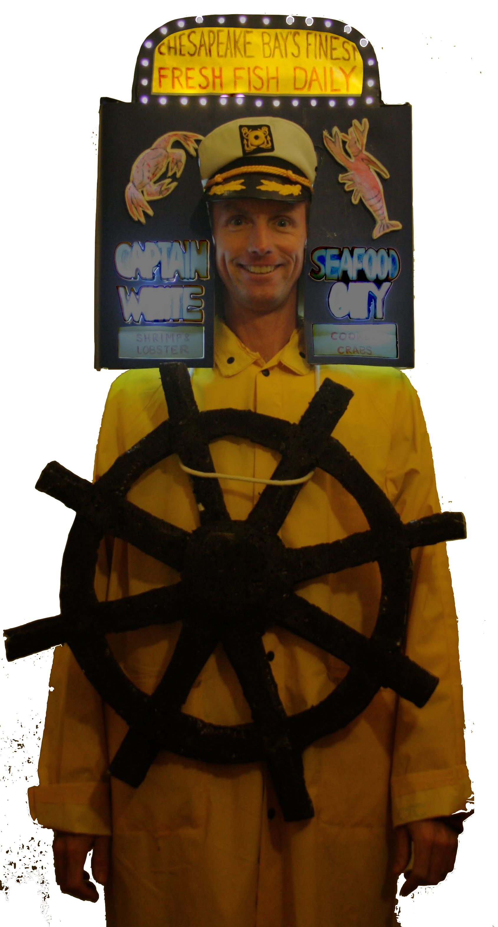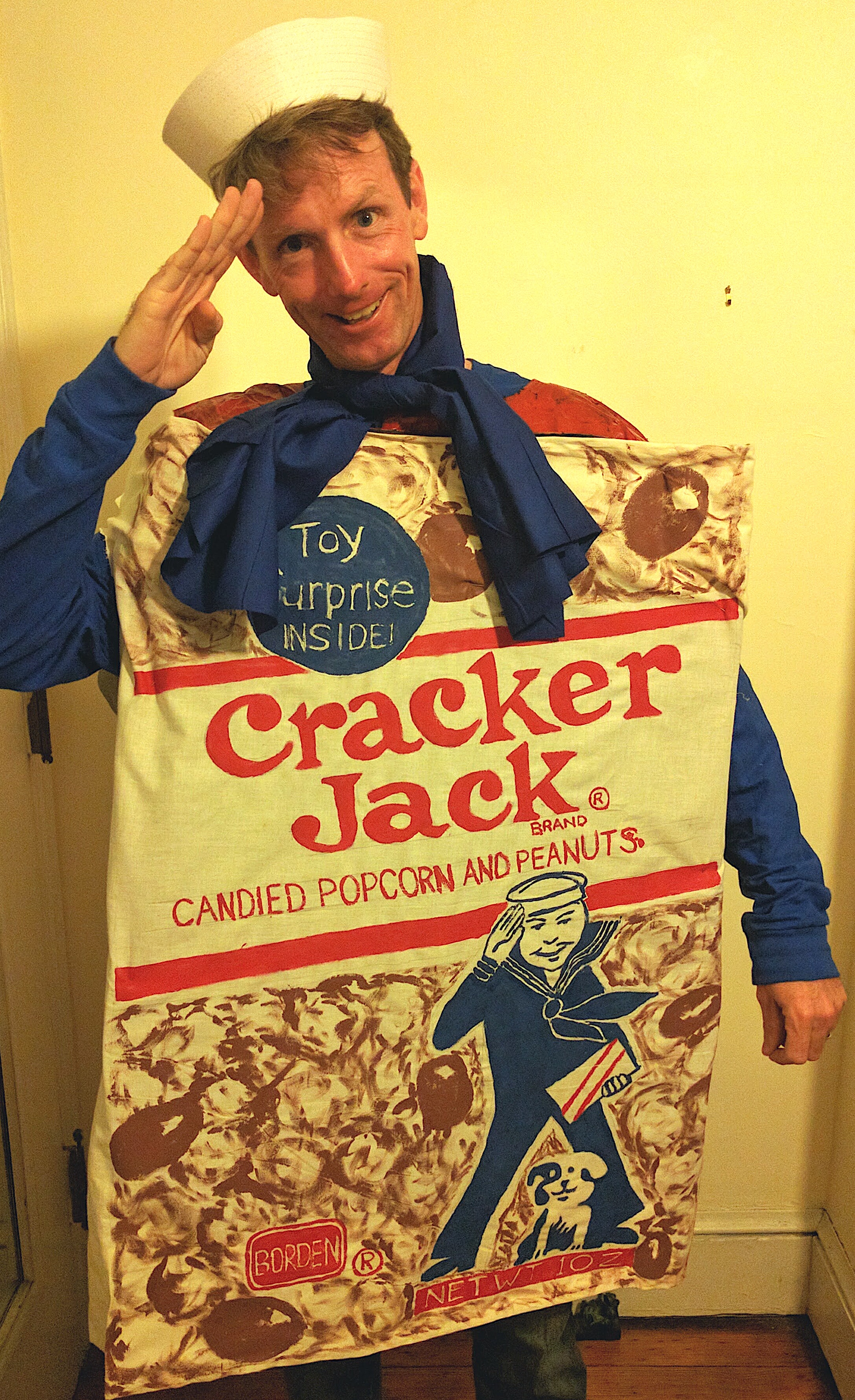 Okay, I admit: Pabst Blue Ribbon and the Old Bay Crab are not a real food icons -- I made them up. But making giant rubbery claws out of plastic wrap, Amazing Goop, and acrylic paint was just too fun to pass up! Toucan Sam had a head made from a batting helmet and fiberglass from a car and boat repair kit. I bought the stuff for the Karzai costume in Uzbekistan and Chinese Turkestan, whitening my specially-grown beard with condensed Mylanta. I made all the other costumes myself, typically by buying stuff fabric store and putting it together with a hot glue gun. Making Mr. Peanut, my most ambitious effort, was more than I bargained for. For Colonel Sanders, getting a 1970s-style historic chicken bucket was tricky -- it required researching old wacky-pack stickers and spending a few hours with with a photo editor! You'd think such an effort would earn me the right to have my wife start referring to me as "The Colonel", but tragically, that hasn't happened.