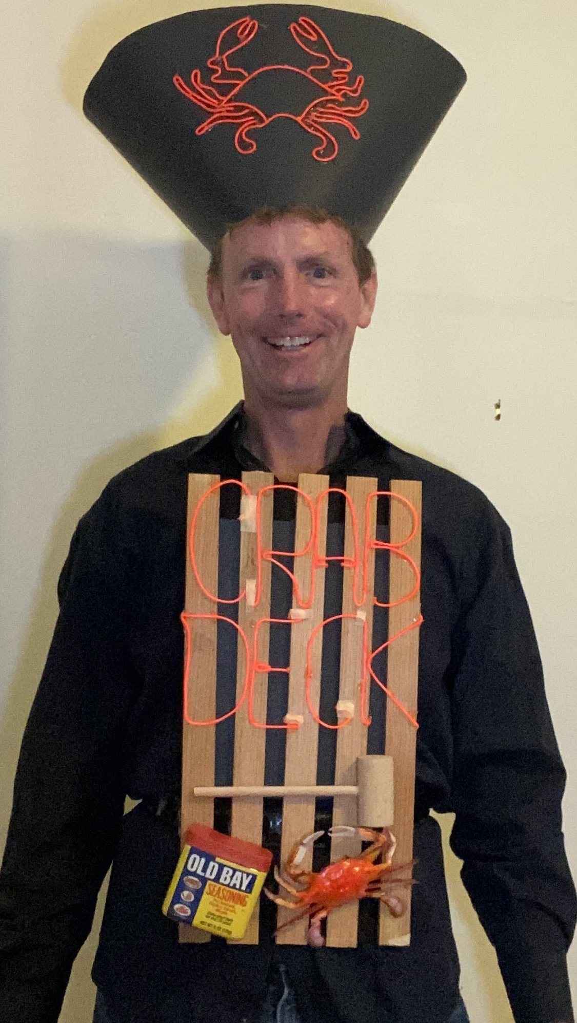 Okay, I admit: Pabst Blue Ribbon and the Old Bay Crab are not a real food icons -- I made them up. But making giant rubbery claws out of plastic wrap, Amazing Goop, and acrylic paint was just too fun to pass up! Toucan Sam had a head made from a batting helmet and fiberglass from a car and boat repair kit. I bought the stuff for the Karzai costume in Uzbekistan and Chinese Turkestan, whitening my specially-grown beard with condensed Mylanta. I made all the other costumes myself, typically by buying stuff fabric store and putting it together with a hot glue gun. Making Mr. Peanut, my most ambitious effort, was more than I bargained for. For Colonel Sanders, getting a 1970s-style historic chicken bucket was tricky -- it required researching old wacky-pack stickers and spending a few hours with with a photo editor! You'd think such an effort would earn me the right to have my wife start referring to me as "The Colonel", but tragically, that hasn't happened.